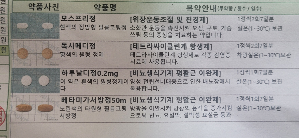 항생제(일 2회, 식후 30분) 요도 넓히는 약(일 1회, 자기 전) 처방 받았습니다
