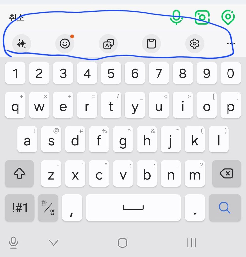 갤럭시 삼성 키보드 위의 파란색부분 없애는 방법 좀 알려주세요