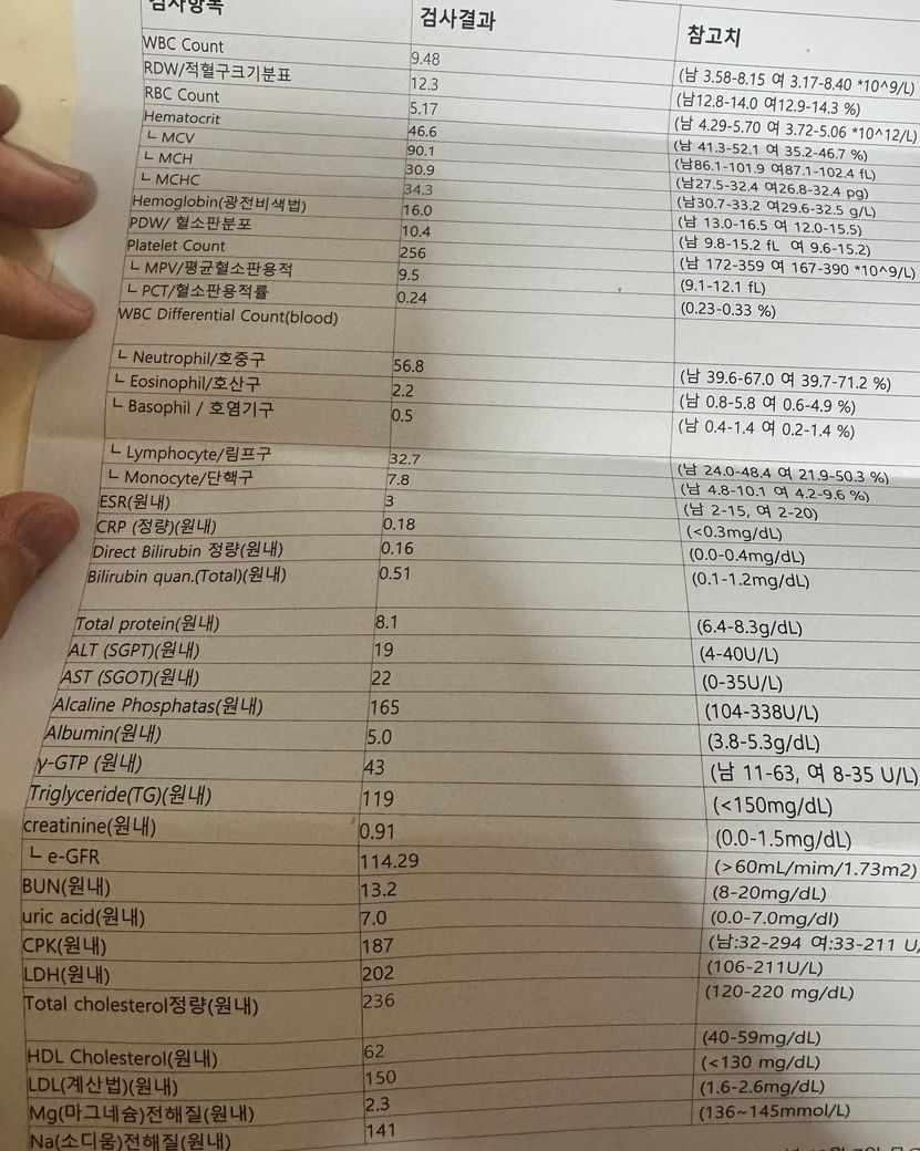 혹시 수치 뭐가 문제인지 봐주실 수 있으실까요...