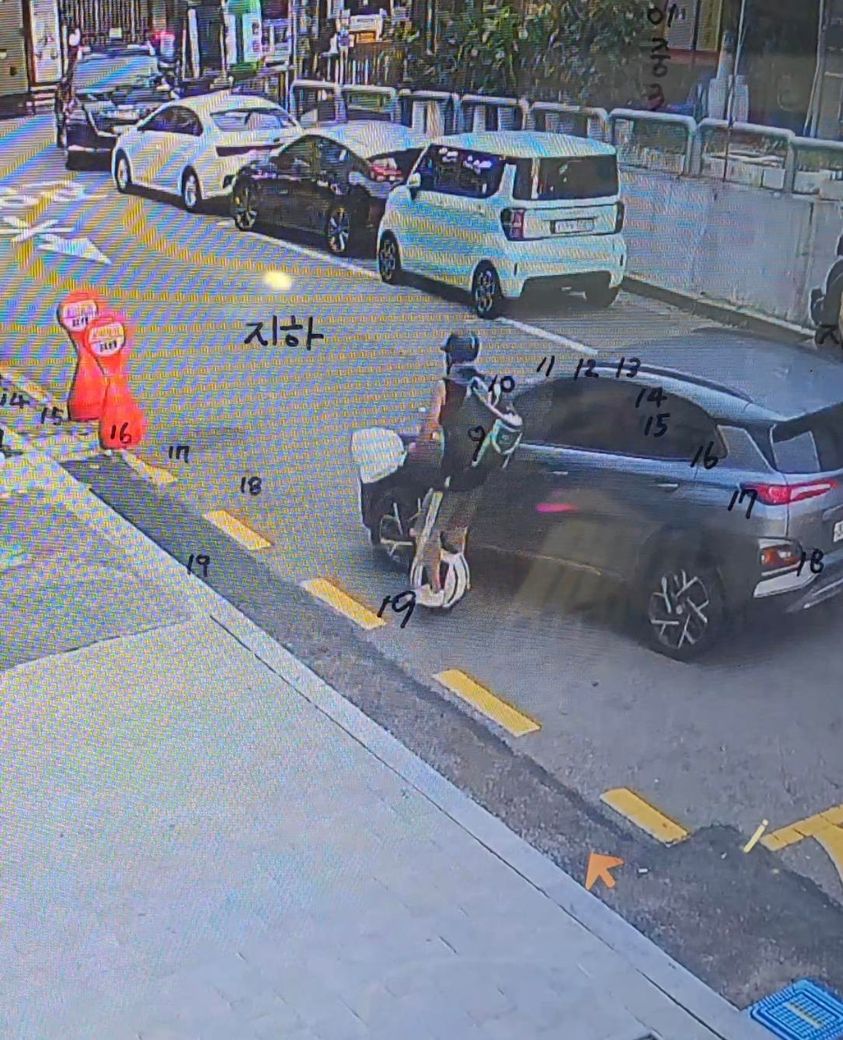 이때 후방에서 주행하던 배달용 외발 킥보드 운전자와 차량 좌측 사이드미러 부분에서 접촉사고가 발생하였습니다.