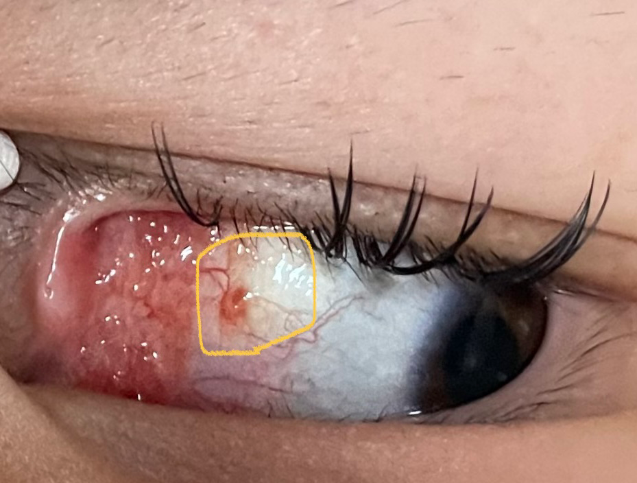 눈 흰자에 해당하는 결막에 충혈이 있는 상태로, 이는 각막신생혈관, 모반 등과는 다른 것입니다. 결막 충혈은 안구 건조, 렌즈로 인한 자극 등에 의해서도 발생할 수 있으며 적절한 치료를 받을시 호전될 수 있습니다. 다만 결막 충혈이 발생했을 때 이를 무시하고 계속 렌즈를 장시간 낀다면, 각막염, 결막염 등의 질환이 발생할 수 있고 더 나아가 각막신생혈관도 초래할 수 있으므로 주의는 필요합니다.