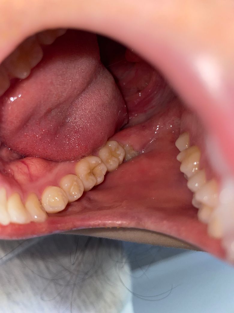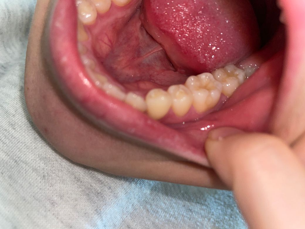 첫번째 큰어금니의 작은 충치일 가능성이 있습니다.