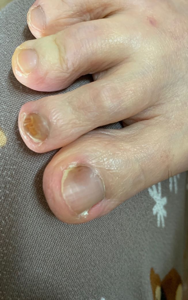 두번째 발톱이랑 비슷해보이는데 신발에 눌려서 그런 걸까요? 아니면 건강에 이상이 있어서 그런건가요?