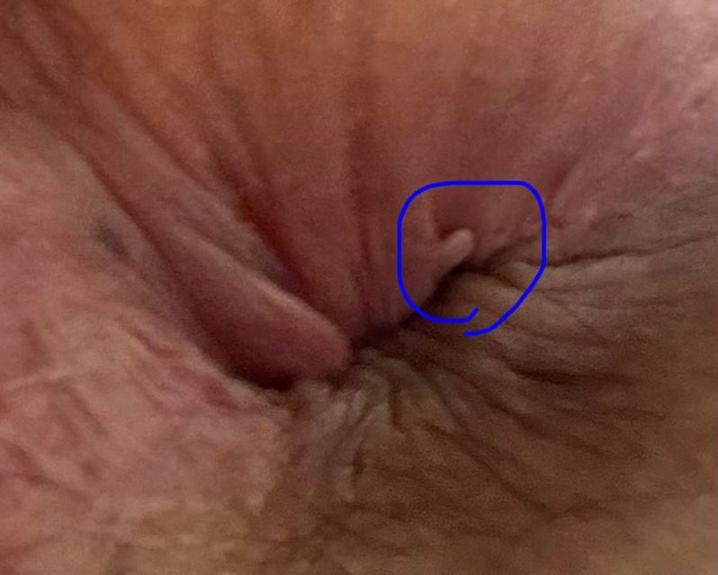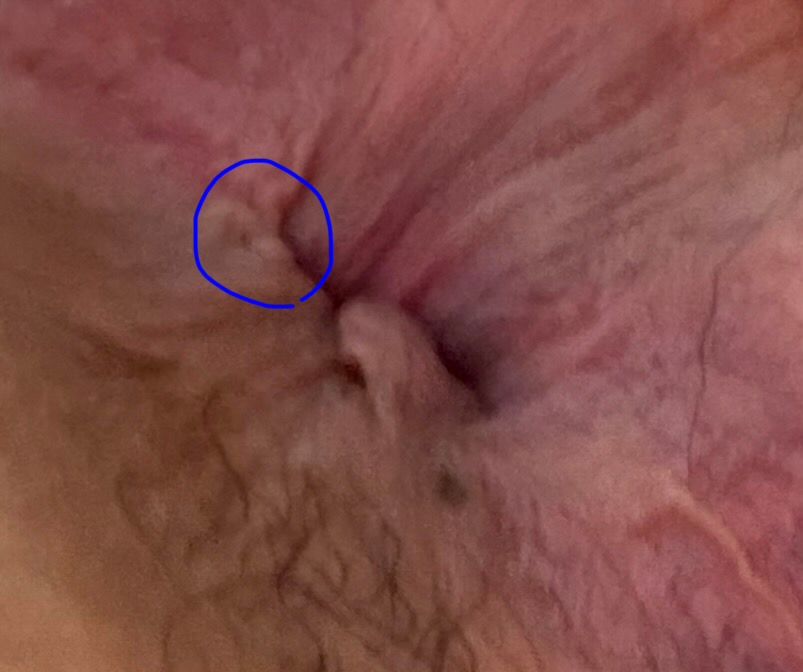 원래부터 있던 좀 특이한 조직인지, 아니면 치핵인지, 곤지름인지 모르겠어요.. 딱히 고통은 없고 첫번째 사진처럼 평소엔 나와있지 않다가, 병변 확인을 위해서 늘리면 저렇게 2~3mm(추정) 정도 되는 한개의 병변이 나오는데.. 설마 곤지름인가요?