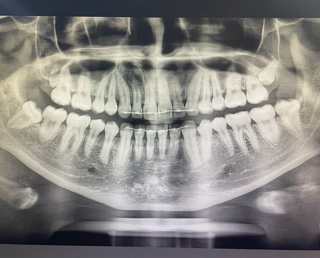 그래서 사진으로만 봤을 경우에는 이미 다 완성되어 있는 사랑니로 보입니다. 해당 치아가 앞에 있는 치아에 뿌리를 흡수할 가능성은 매우 낮아 보입니다. 기울어진 치아가 잇몸에 부분적으로 노출이 되면 이물질이 끼게되고 문제를 발생시킬 수 있어.