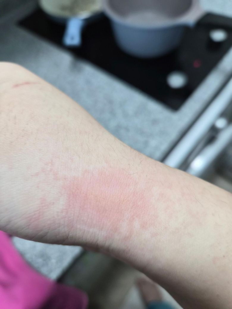 상처는 피는 진짜 옅은 생채기정도 이제 상처는 안보이는데 처음에는 상처주위로 하얀색으로 부풀어올랐는데 지금은 빨간색으로 번져가듯 보이네요