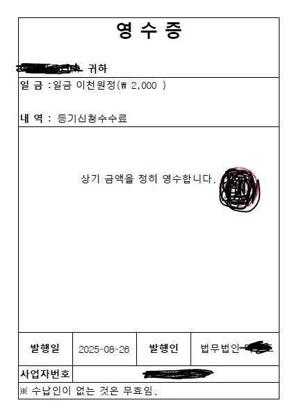 수임업체가 최근에 등기변경을 하고, 이영수증을 제게 보내줬는데요.