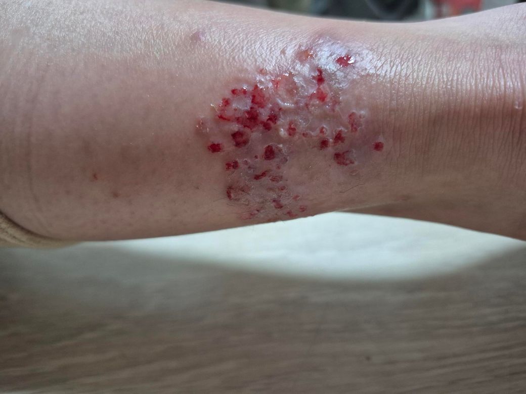 사진 첨부하는데 많이 혐오스러울 수 있어요. 간지럼 못 참아서 긁은 직후라 진물이 나와요