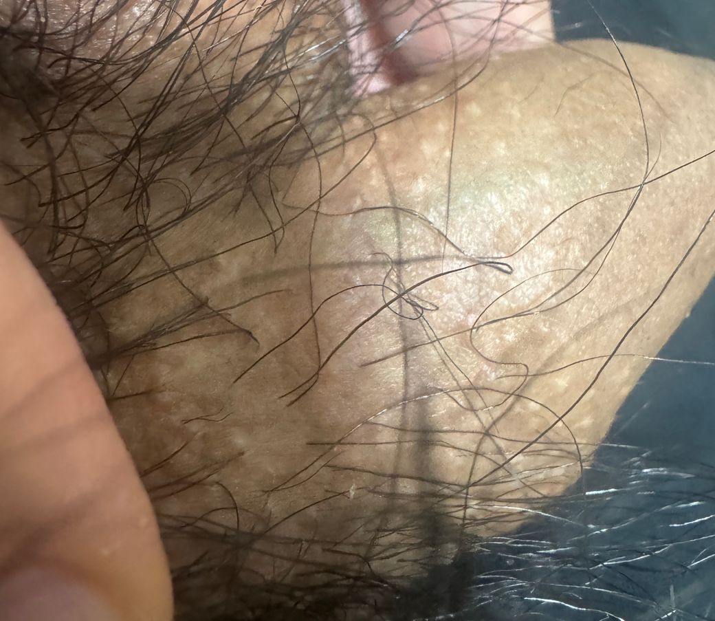 수포는 아니라서 헤르페스 병변은 아니구요. 피지샘 융기같습니다. 염려가 되시는 경우라면 비뇨의학과에서 다시 확인을 해보시면 좋겠네요.