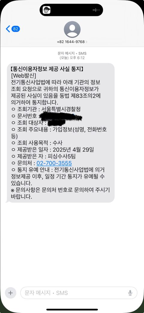 수사 목적으로 조회한 것이므로 해당 연락처로 직접 연락하셔서 본인에 대해서 수사 중인 게 맞는지 확인해 보시기 바랍니다
