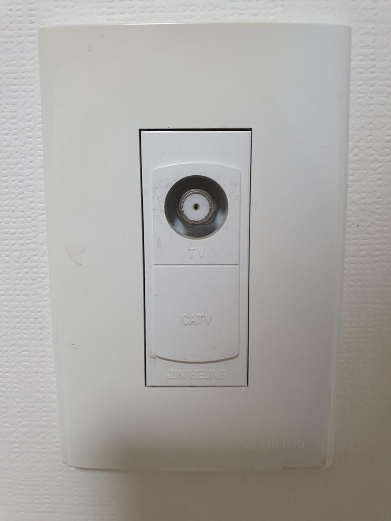요즘 스마트TV는 사진 속 안테나 콘센트가 있는 벽에 꼭 설치할 필요는 없습니다. 사진 단자는 지상파/케이블 티비 안테나 단자입니다. 즉 스마트티비는 안테나가 필수가 아니며 안테나 단자는 지상파 직접 수신용입니다. 셋톱박스를 쓰면 설치 위치가 자유롭습니다. 그래서 거실이든 방이든 인터넷 선만 있으면 설치 가능합니다.