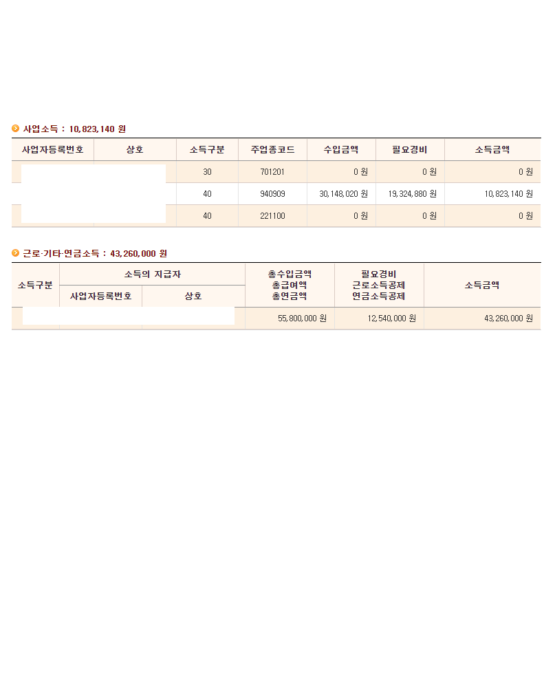 제가 경비를 많이 쓴게 없는것 같은데 1900만원 가까이 경비가 인정되어 있어서 세세히 어떤 내용인지 보고 싶어서요. 그리고 제가 웹 외주 회사에 1,000만원 세금계산서를 끊었는데 그건 반영이 안된것 같아요. 그 회사가 올해 폐업을 했다고 하더라고요.