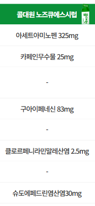 약국에서 처방받은 약이랑 현재 먹고있는 콜대원 성분표 입니다.