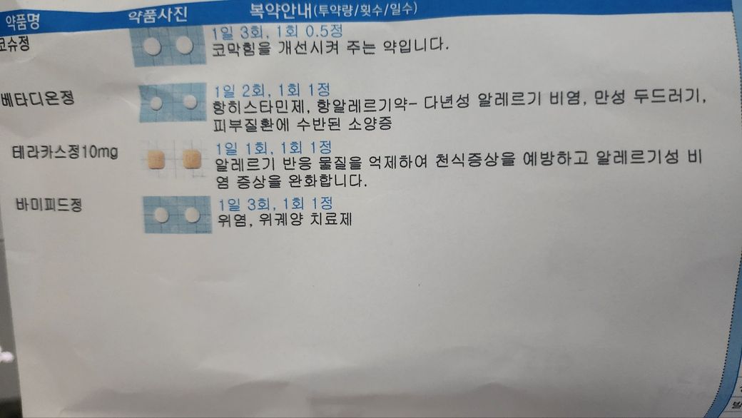 2~3일 전부터 콜대원 감기약 먹으면서 버티다가 이비인후과에 가서 약 처방 받았는데,