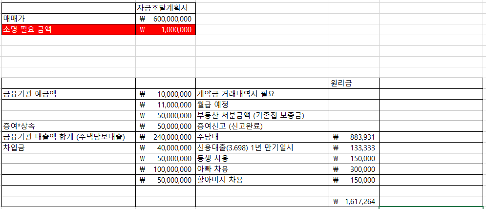 이런 경우 주택 구입간 가족 차입금액이 인정되나요? (자금조달계획 작성)?
