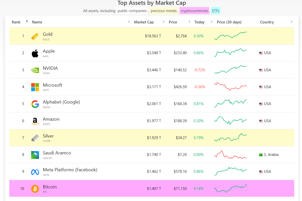 그렇다보니 금은 여전히 가치저장수단으로 여겨집니다. 단일 자산으로는 시총1위이고요.