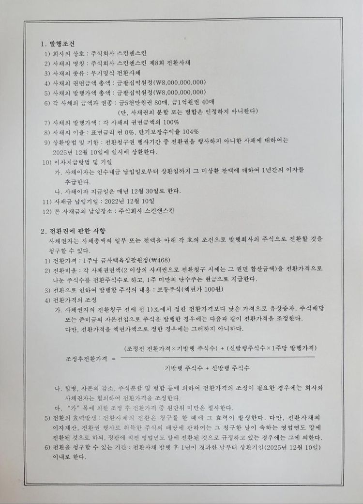지인이 저에게 돈을빌렸는데 이런저런 거짓말로 계속 갚지않아 곧 신고한다하니 이 전환사채권을 가지고있다며 이거 팔아서 갚는다고 조금만 기다려달라합니다. 인터넷에 확인하니 이 스킨앤스킨이란 회사는 에코글로우라고 상호명도 바뀌었더라구요. 직접 에코글로우에 팩스보내 문의하려하니 팩스도 전화도 안되더라구요.