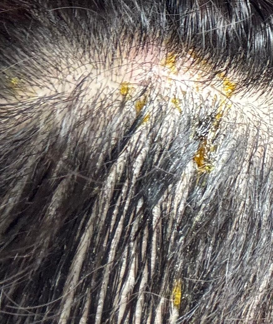 사진으로 상처를 제대로 확인할 순 없지만 피부가 벗겨지고 진물이 나는 상태라면 2도 화상 가능성이 높습니다. 감각이 있고 통증이 크지 않다면 심하지 않은 상태일 수도 있지만, 두피는 연약한 부위라 주의가 필요해요. 우선 깨끗한 물로 화상 부위를 부드럽게 세척한 후, 소독한 거즈나 깨끗한 거즈 패드로 보호하는 것이 좋습니다. 알로에 겔이나 화상 치료 연고(후시딘, 마데카솔 등)를 바르면 도움이 될 수 있죠.