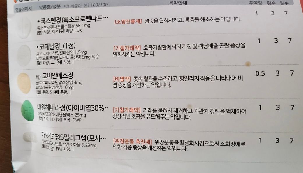 코로나에 걸려 처방약을 받아서 먹었습니다.