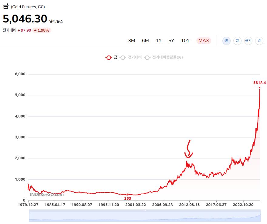 지금은 금도 무한정 오를거 같지만, 과거에 2011년정도에 꼭지에 산 사람은 거의 10년동안 물려있었습니다. 이런 역사도 있으니까 잘 판단하시는게 좋을거 같습니다.