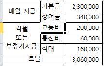 아래 내역 중 기본급,상여금만 지급이라고 합니다.