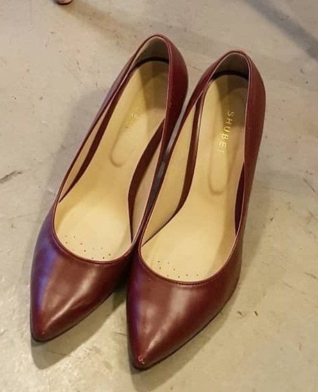 사진 속 버건디 색상의 슈베(SHUBE) 펌프스 힐의 발사이즈와