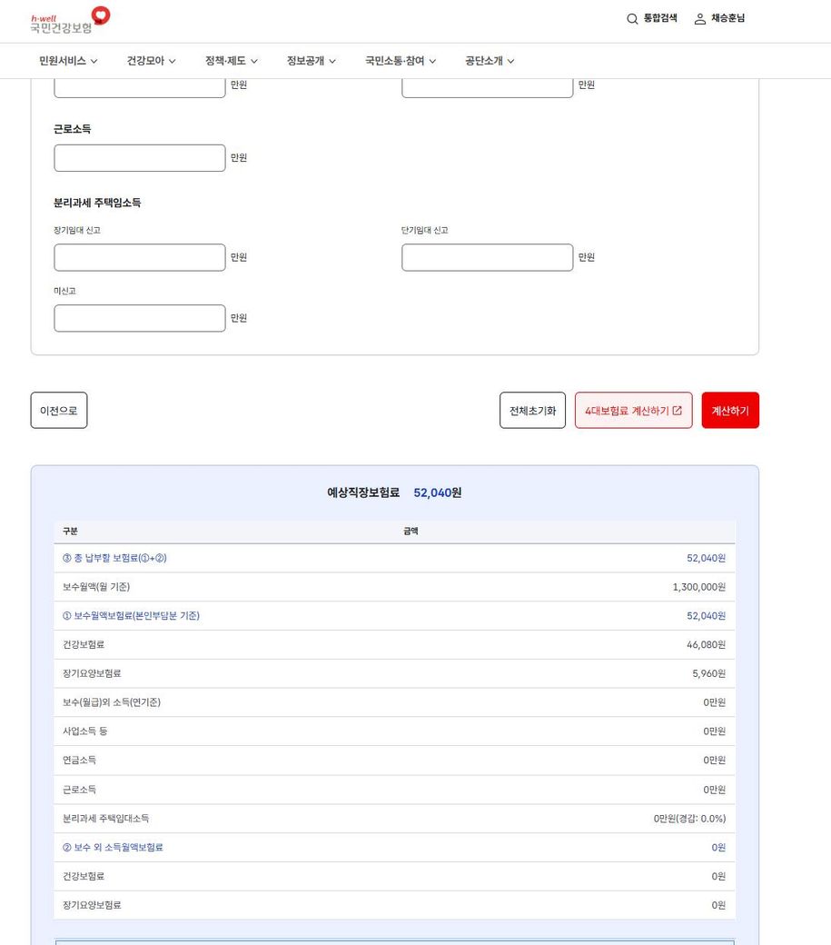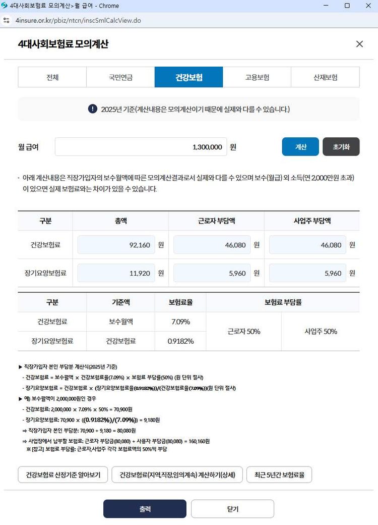 다름이 아니라 건강보험공단 및 연 공단 내에 있는 모의계산기를 통해 월급 130만원을 계산했을 때 정확히 계산된건지 궁금합니다..
