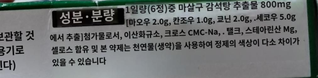 마행감석탕인것 같네요. 마황 행인 감초 석고로 구성된 약으로 만성기침 치료에도 좋습니다.