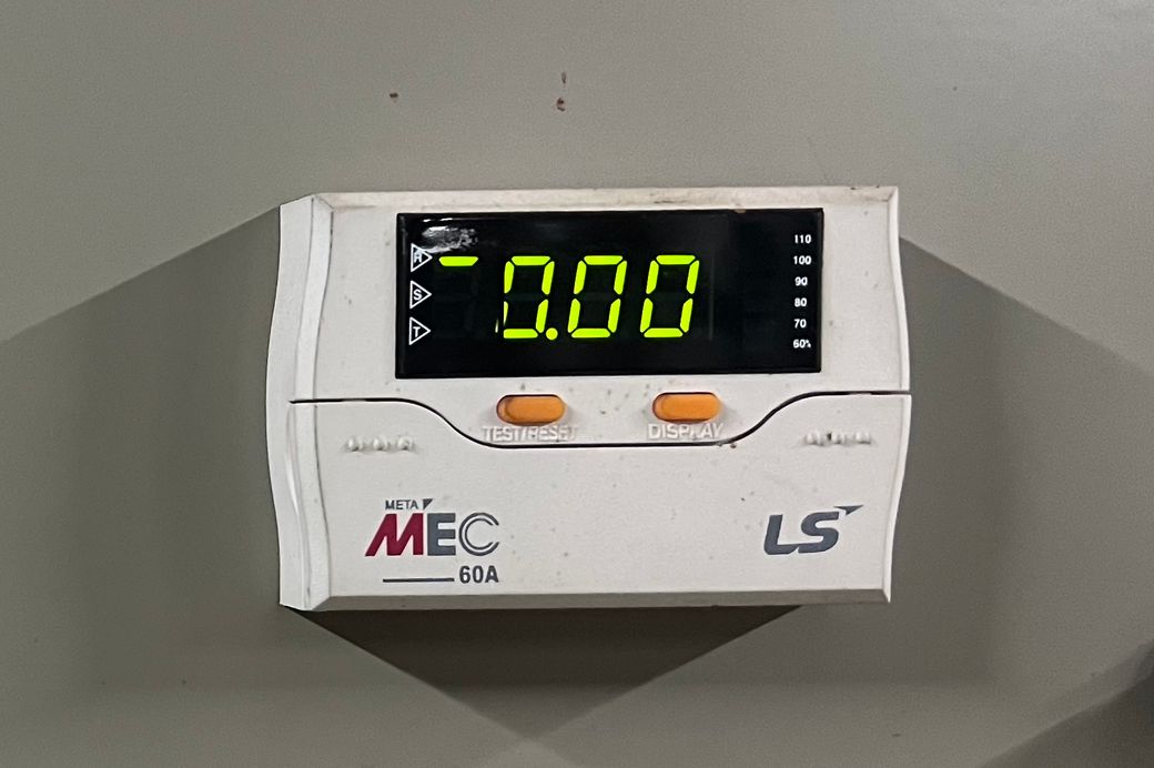 안녕하세요. 김상엽 전문가입니다. 사진의 EOCR에서 전류가 0.00으로 표시되는 경우는 CT 결선 불량, CT 방향 반대, 2차측 단선, 설정값, 오류, 또는 부하 미인가 상태일 가능성이 큽니다. 특히 CT 2차 회로 개방이나 극성 오류가 가장 흔한 원인이므로 배선과 단자 체결 상태를 우선 점검하시고, 다른 정상 설비와 동일 조건인지 비교 확인해보시는 것이 좋습니다.