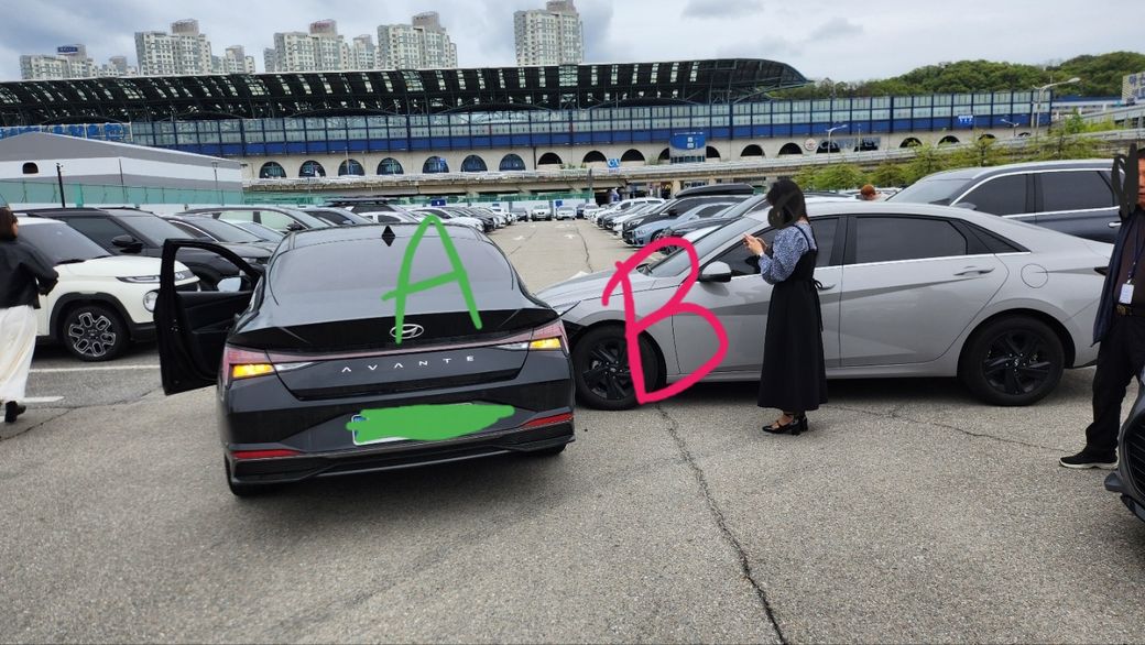 저희(A)는 주차장으로 들어온 상황이었고, 상대방(B)은 출차하러 가는 상황이었습니다.