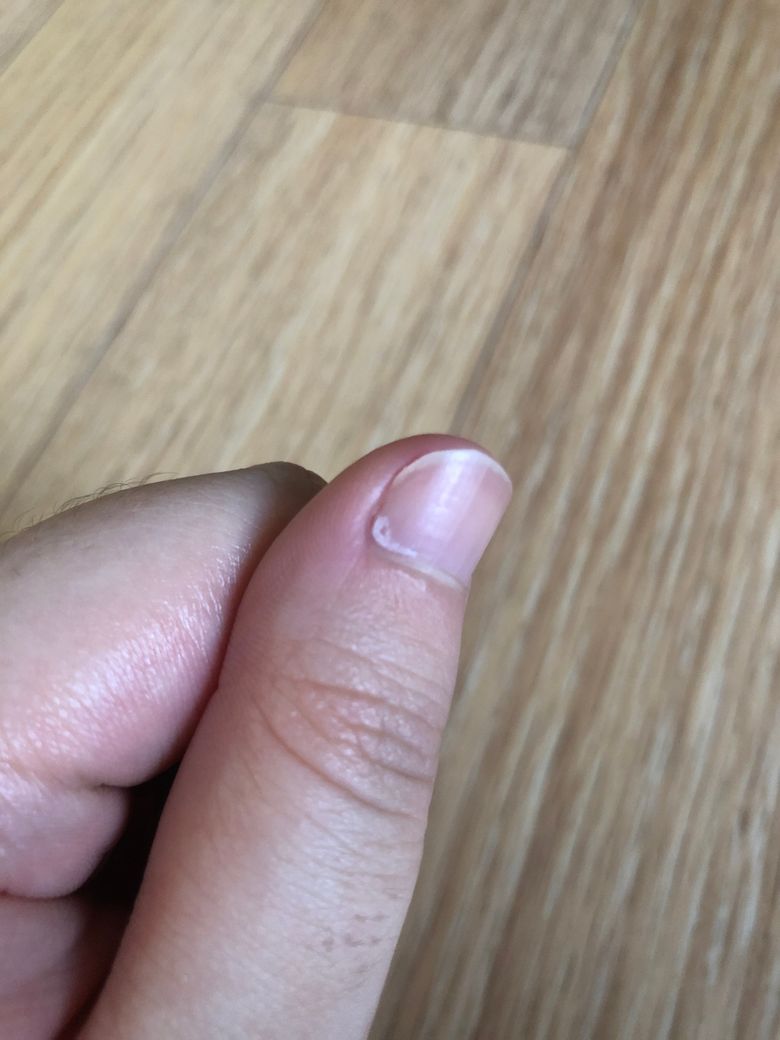 사진처럼 엄지손톱 밑에 하얀게 생겼어요. 이게 뭘까요? ㅠㅠㅠ 의사선생님들 도와주세요 무좀 같은 건 아니겠죠? ……………..