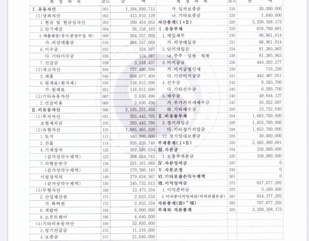 재무상태를 말씀하시는 건가요
