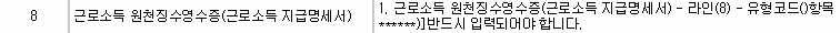 연말정산 후 지급명세서 제출을 하니 '근로소득 원천징수영수증(근로소득 지급명세서)-라인-8-유형코드()항목-반드시 입력되어야 합니다.라고 오류가 뜹니다.