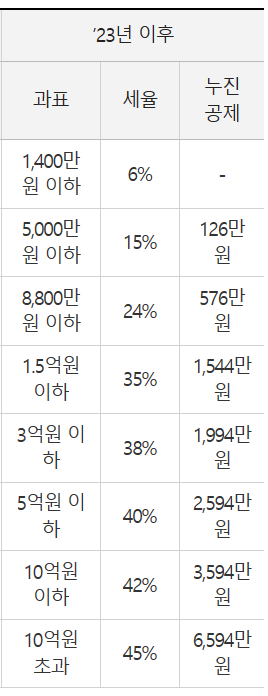과세표준에 따른 기본세율은 아래와 같으며, 본인이 직접 경작을 한 것이 아니기 때문에 해당 토지는 비사업용 토지로 보아 기본세율에서 10%가 중과됩니다.