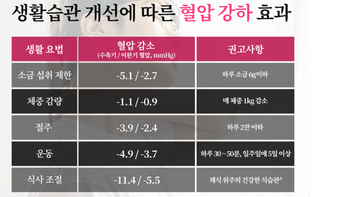 운동과 식습관 개선하면 혈압을 얼마나 낮출 수 있나요?