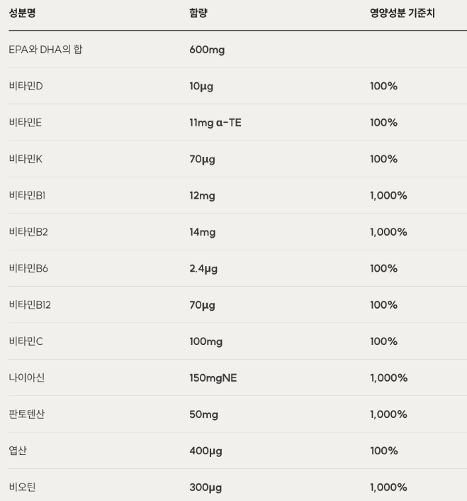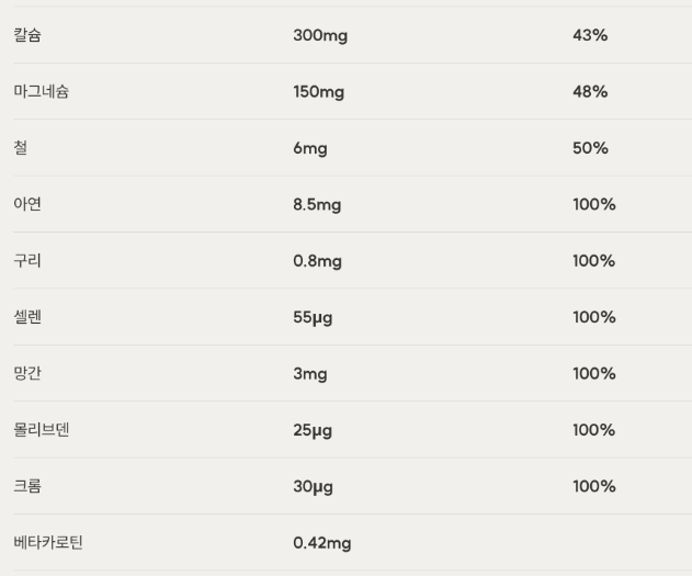 건강기능식품의 성분 함량은 위와 같습니다