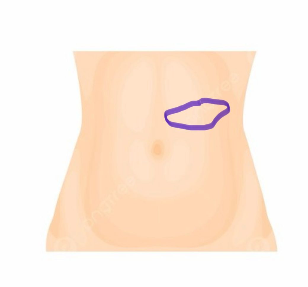 좌측 상복부 표시한 부분을 만지면 저 원형만한 딱딱하게 장기가 만져지는것같은 느낌과 꾸룩소리도 납니다