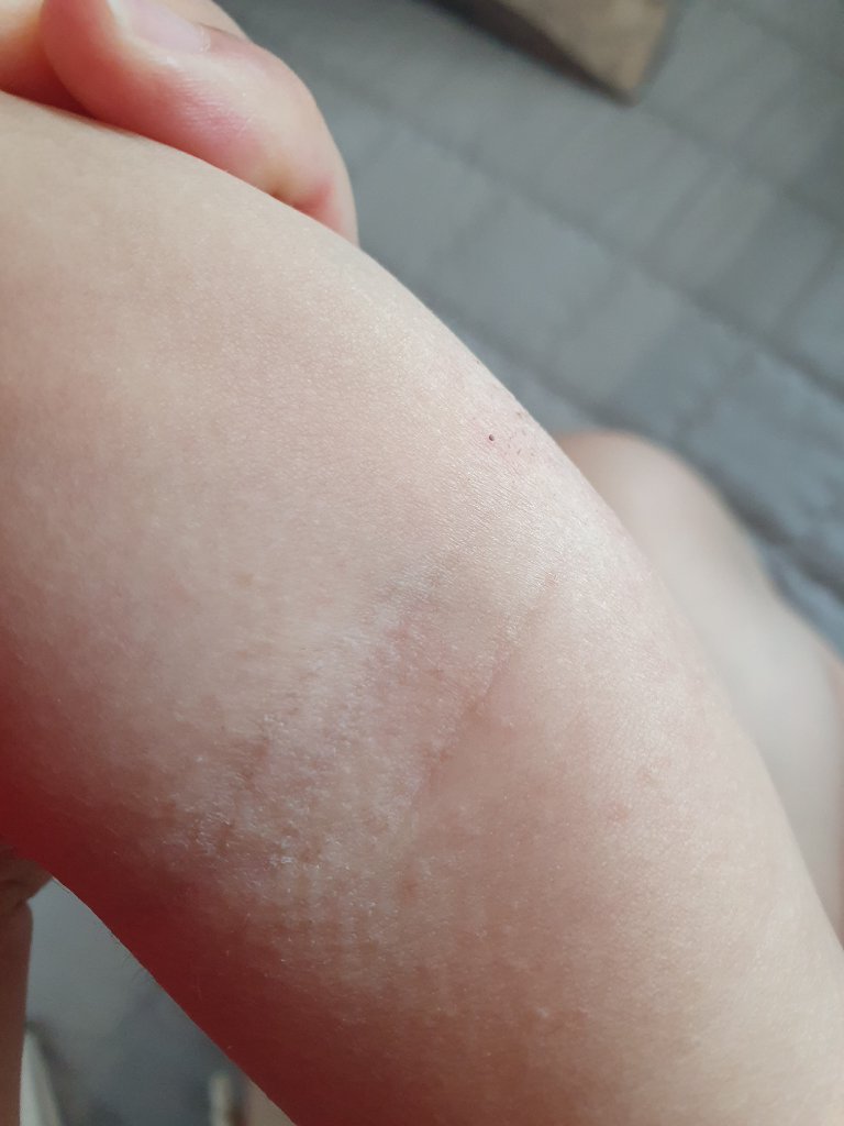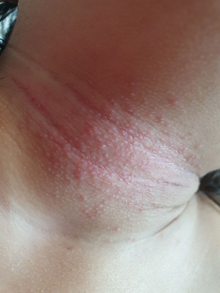 땀 흘리고 열이 많이 내린다음 생겨서 땀띠인가 싶긴한데 땀띠는 큐어크림 바르면 들어가던데 이건 심해서 그런가 발라도 호전이 안 되더라고요.