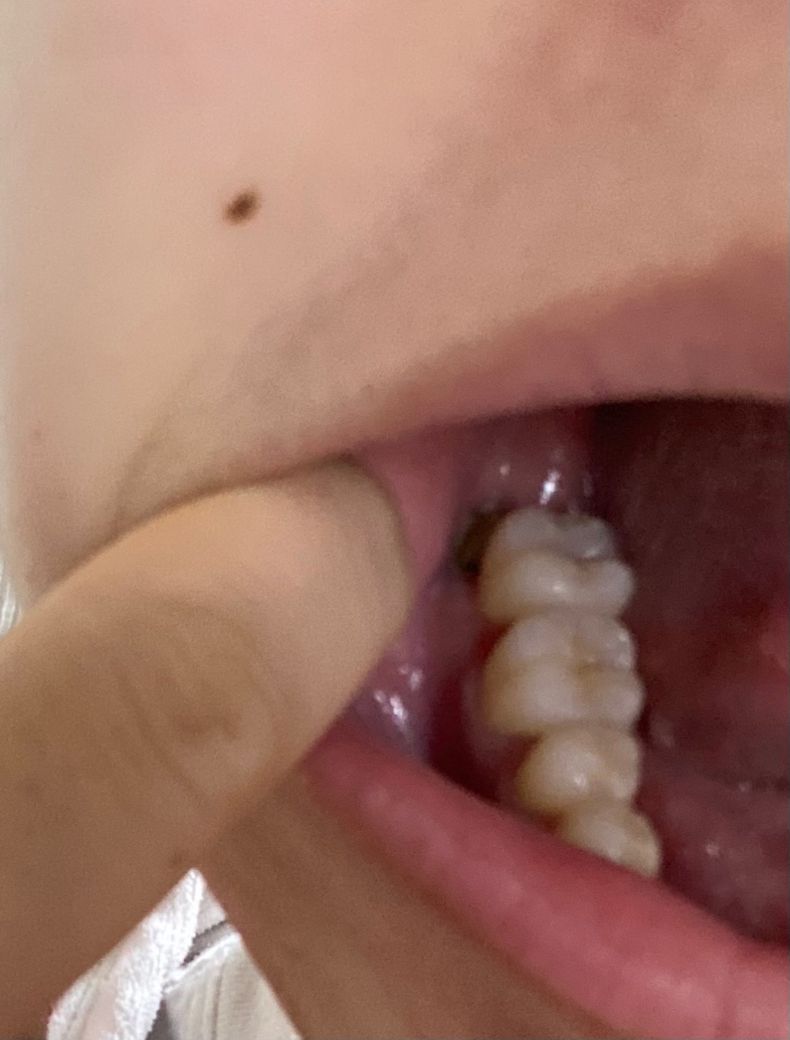 그런데 구멍안에 이상한 노랑색이랑 흰색 이물질?? 같은 게 보이는데 잇몸이 차고 있는건지 염증인지 궁금합니다.