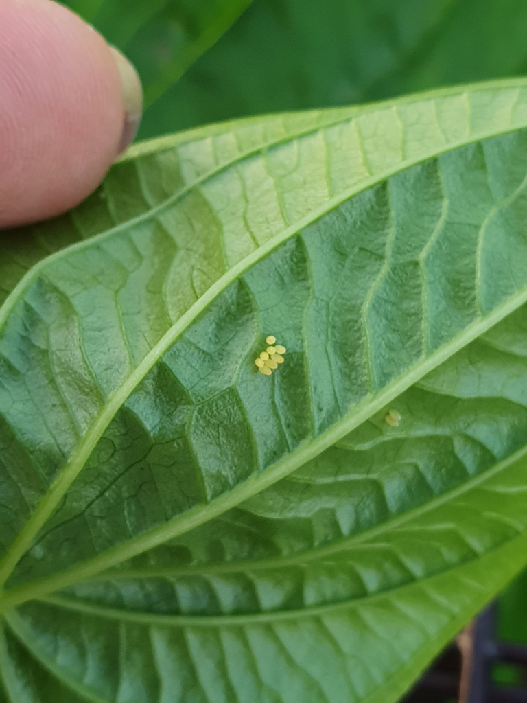 누구알인지 알수있나요? 다른잎에는 없는데 하늘마의 연한잎 뒤에보니 모든 잎 한장마다 뒷면에 10개씩 알이 붙어있네요. 궁금해요.