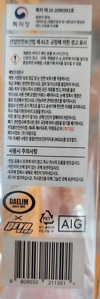 자전거체인오일은 피부에 묻었을 때 독성자극이 나타날 수 있어서 조심해야합니다.