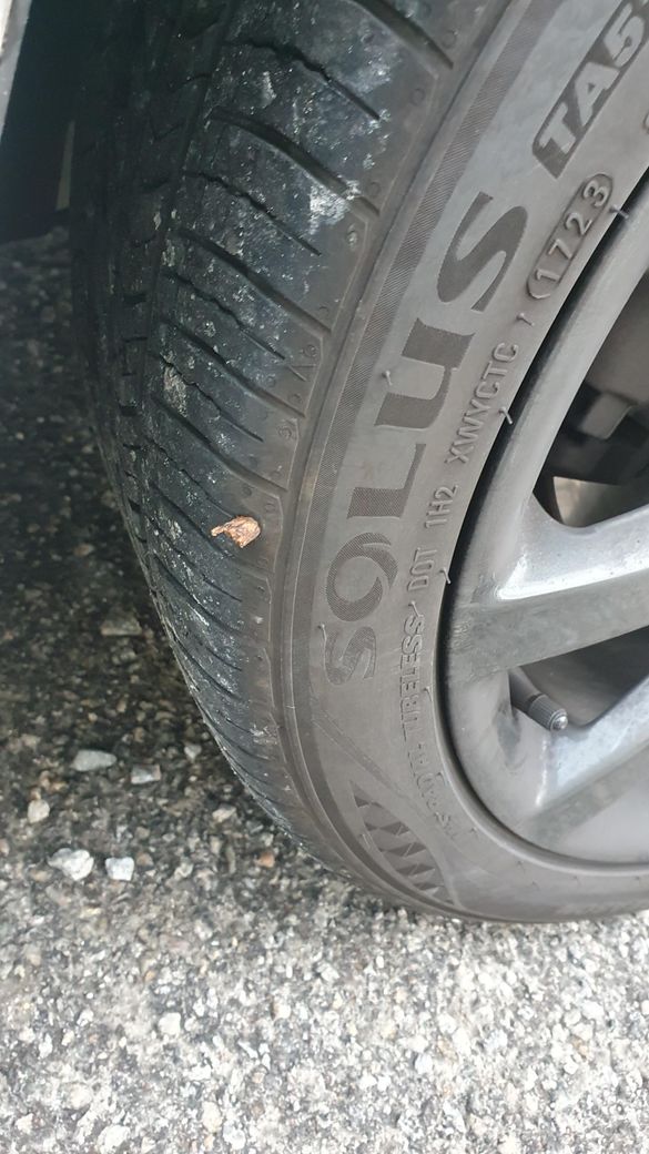 아래 사진과같이 못이 박혀 타이어 펑크났는데 타이어 교체해야하는 정도인지 아니면 지렁이로 메꾸고 타도 되는 수준인지 문의드립니다.