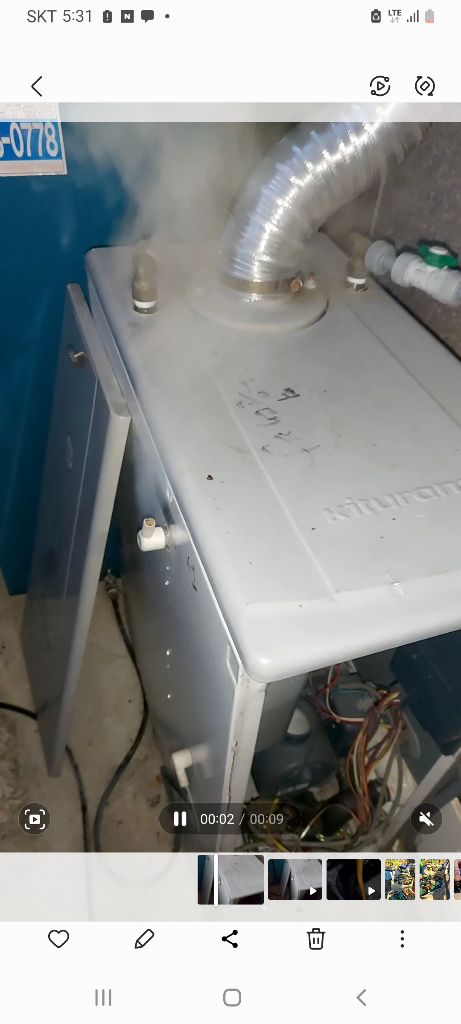 봄에 전원을 빼두었다 돌리니 옆에서 스팀이나오네요.