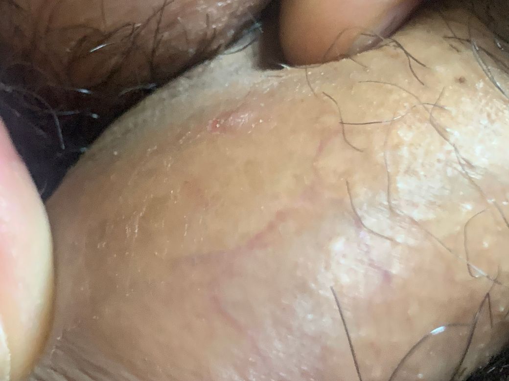 모낭염이 생겼다가 흉터가 생기면서 낫는 과정인 듯 보입니다. 매독은 아니라는 의미이지요. 점차 흉터는 옅어질 거라서 기다려 보셔도 될 것 같습니다.