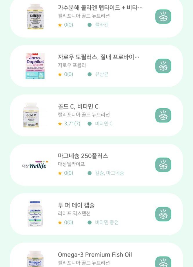 종합비타민, 오메가3, 여성유산균, 마그네슘, 비타민C, 콜라겐으로