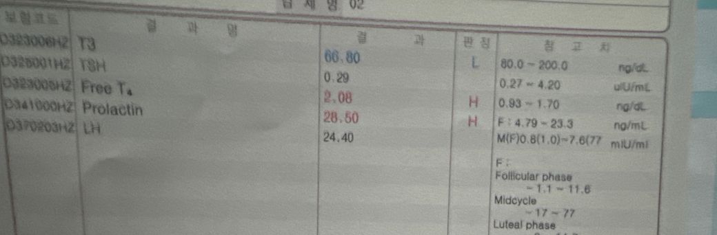 올려주신 검사 결과지로 미루어 현재 불현성 갑상선 기능 항진증 또는 갑상선염의 가능성이 생각됩니다.