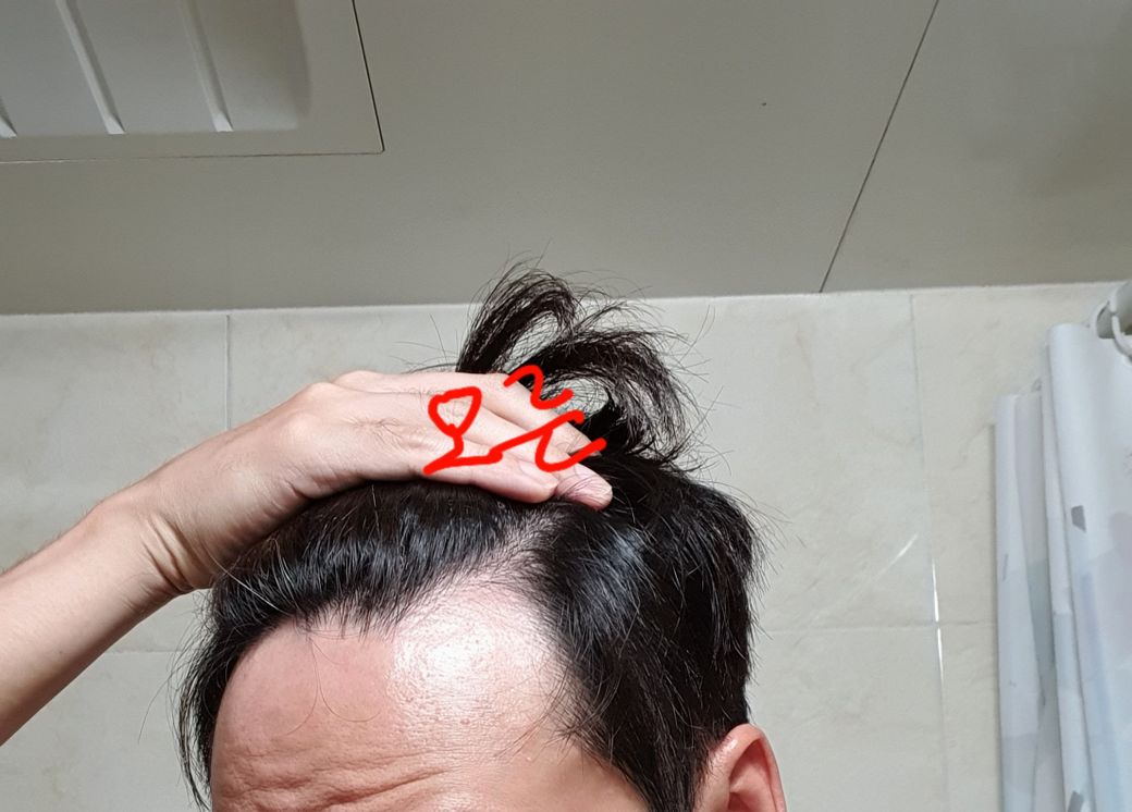 (2) 머리 앞부분이나 정수리의 머리숱이 줄어들거나 가늘어짐