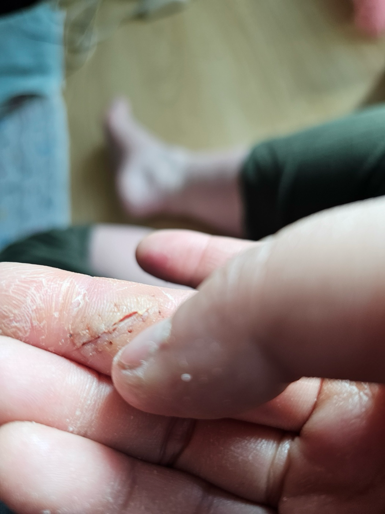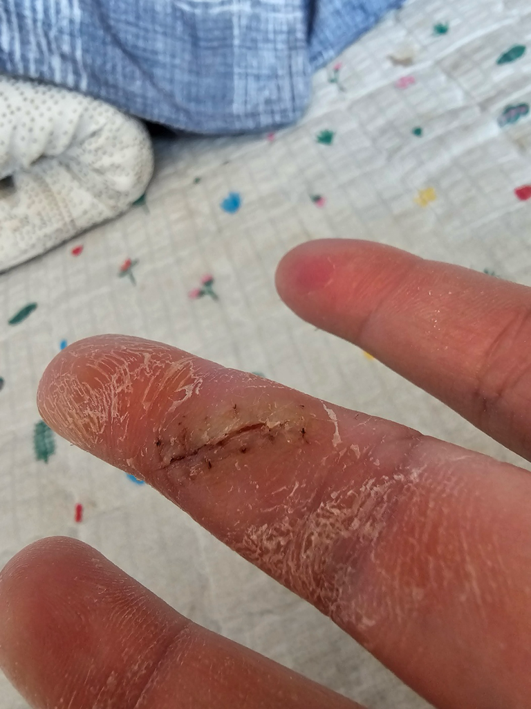 근무 환경이 청결하지 못하고 손이 다칠 일이 많다면 상처연고와 밴드를 붙이는 것이 좋겠습니다.