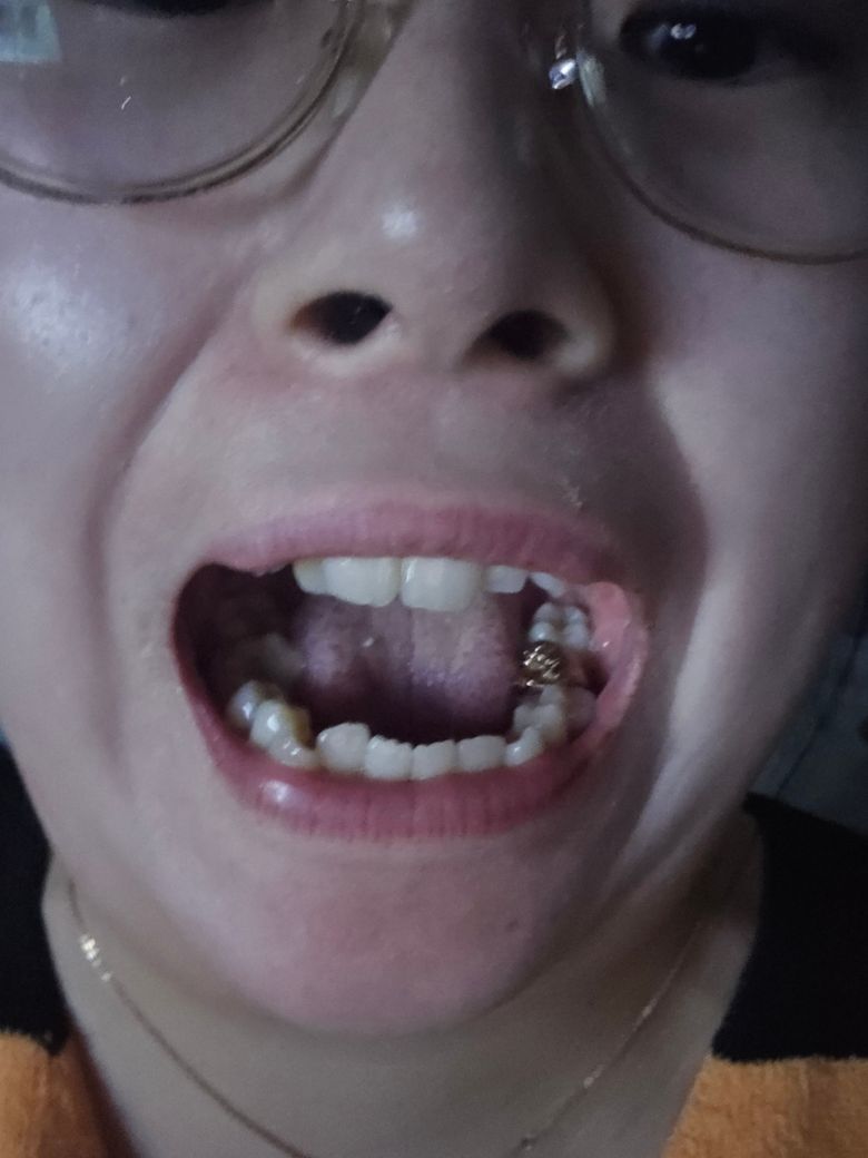 이게충치인가요 아까사진을 못올려서다시적어요 오른쪽아래 금색니다음치아가 변색인가요 충치인가요 병원서 추적관찰중이어서요??진행된거아닌가요