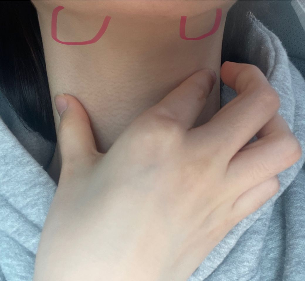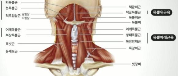사진만으론 정확한 부위를 판단하긴 어렵지만 앞목 근육이 뭉치고 뻣뻣해지면 림프 순환의 저하, 자세의 변형(거북목) 등 여러 영향을 줄 수 있습니다.